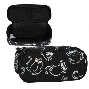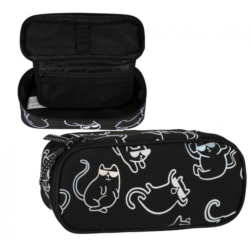 Piórnik szkolny saszetka Czarne Kotki Holo
