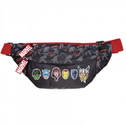 Atrakcyjny design: Czarna kolorystyka z nadrukiem przedstawiającym logo Marvel Avengers nadaje saszetce nowoczesny i dynamiczny wygląd.