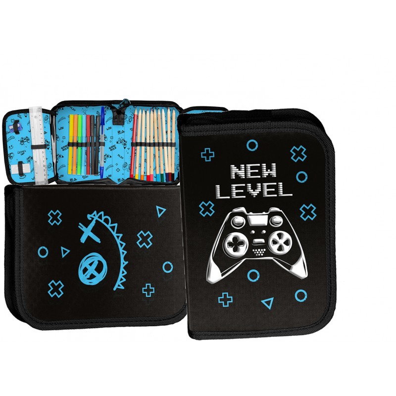 Piórnik New Level to idealny wybór dla miłośników gier i nowoczesnego stylu. Ma dynamiczny design inspirowany światem gamingowym – na jego przedniej części znajduje się duży nadruk pada do gier oraz stylowa nazwa New Level w futurystycznej czcionce.