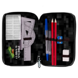 Piórnik Minecraft Press Start to idealny wybór dla miłośników gier i nowoczesnego stylu. Ma dynamiczny design inspirowany światem gamingowym – na jego przedniej części znajduje się duży gry Minecraft.