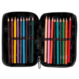 Piórnik szkolny z wyposażeniem pozwala na łatwy dostęp do wszelkich artykułów szkolnych. Wnętrze piórnika jest starannie zaprojektowane, aby pomieścić ołówki, długopisy, kredki i inne niezbędne przybory, organizując je w sposób, który ułatwia codzienną naukę.