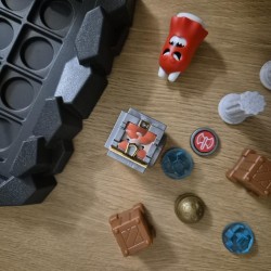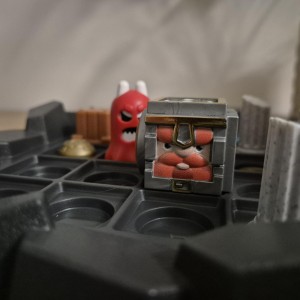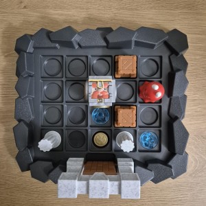 Gdy chcesz przesunąć bohatera na wybrane pole, musisz przeturlać jego kość na sąsiednią ściankę w wybranym przez siebie kierunku. Ścianka z tarczą pozwala okręcić kość na planszy, zmieniając tym samym kierunek, w którym bohater będzie się dalej poruszał.