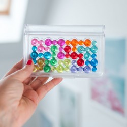 Zanurz się w świat pełen bąbelków! Wybierz zadanie, ułóż element składający się z bąbelków różnej wielkości na przezroczystej planszy i dopasuj pozostałe elementy tak, aby każdy bąbelek znalazł swoje miejsce. Pamiętaj, każde ze 120 zadań ma tylko jedno właściwe rozwiązanie.