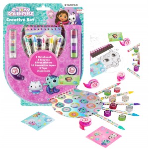 Ten uroczy zestaw do kolorowania został stworzony z myślą o najmłodszych fanach popularnej bajki Gabby’s Dollhouse. Idealny do rozwijania wyobraźni, zdolności manualnych i kreatywności dzieci.