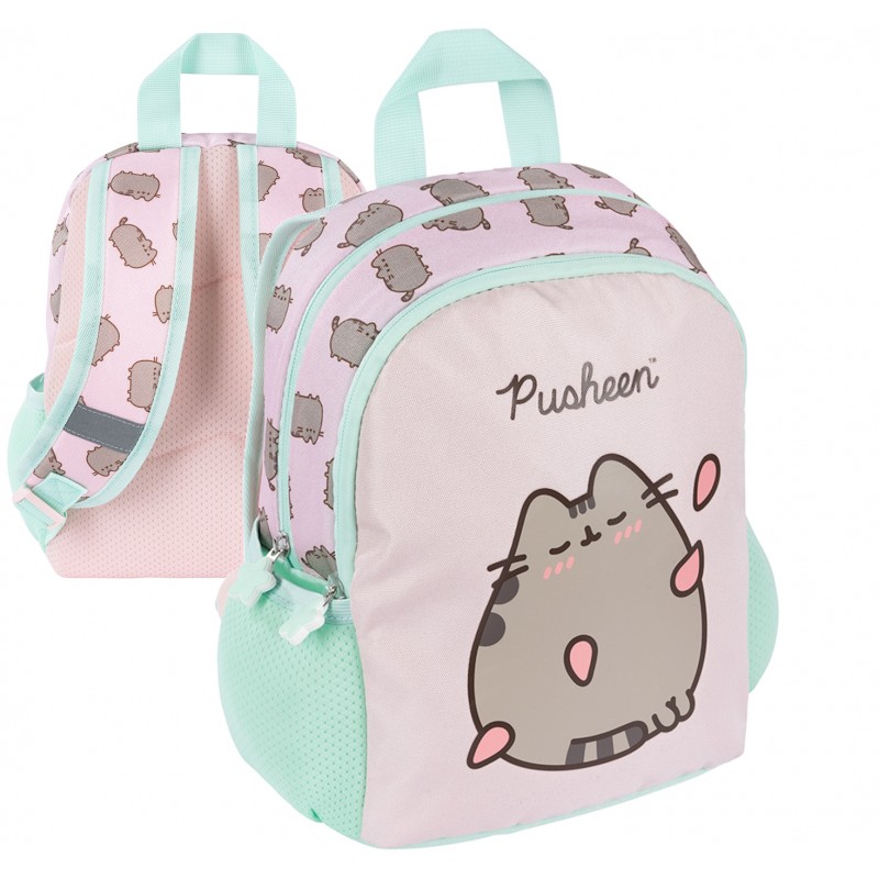Plecak utrzymany jest w pastelowym, różowym kolorze z motywem sympatycznej kotki Pusheen, co z pewnością przypadnie do gustu młodym przedszkolakom. Gumowe zawieszki przy suwakach dodają uroku i ułatwiają korzystanie z zamków błyskawicznych.