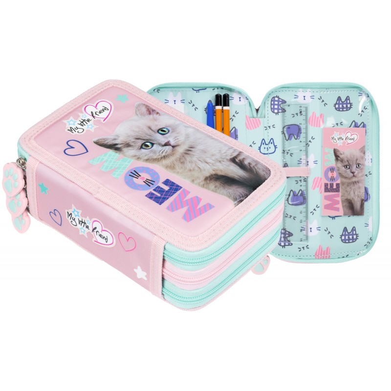 Piórnik szkolny potrójny z wyposażeniem My Little Friend Fluffy Kitty