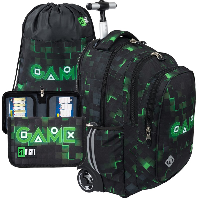 Zestaw szkolny plecak na kółkach Green Game St.Right