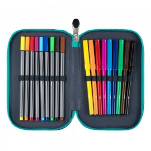 - posiada przegrody i liczne mocowania ułatwiające organizację przyborów szkolnych