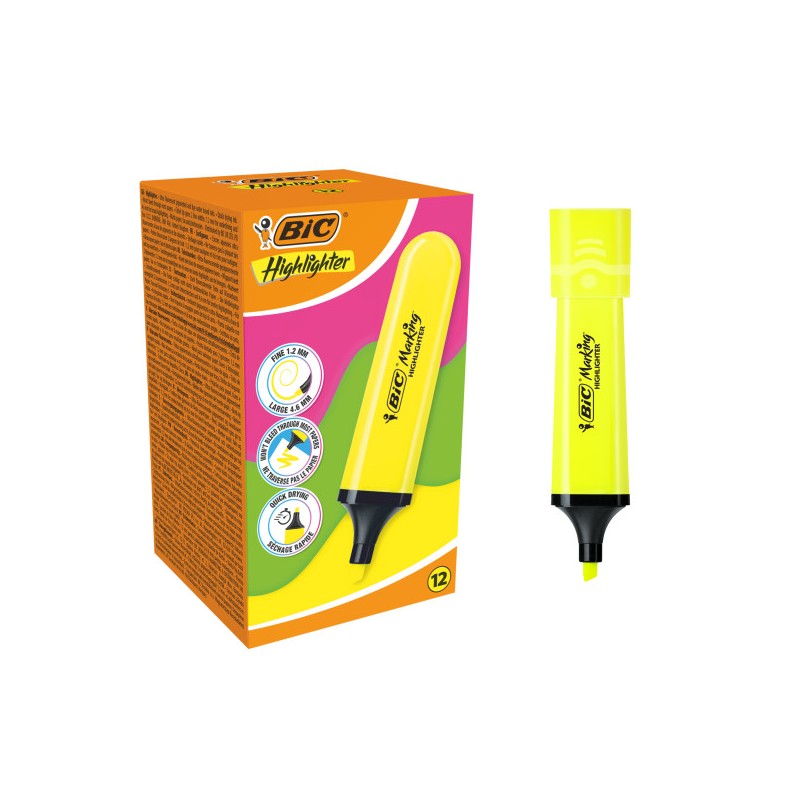 Opakowanie zawiera 12 zakreślaczy w neonowym żółtym kolorze. Od 1950 roku BIC z dumą dostarcza produkty najwyższej jakości, przeznaczone do codziennego użytku.