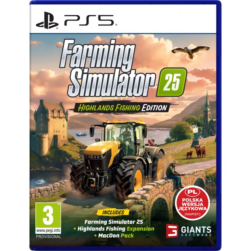 Farming Simulator 25 Highlands Fishing Edition zawiera zarówno docenioną podstawową wersję gry jak i rozszerzenie Highlands Fishing. Do twojej dyspozycji zostanie oddanych 26 upraw, 4 mapy, ponad 400 maszyn, ponad 150 autentycznych marek, akwakultura, rolnictwo, leśnictwo i hodowla zwierząt.