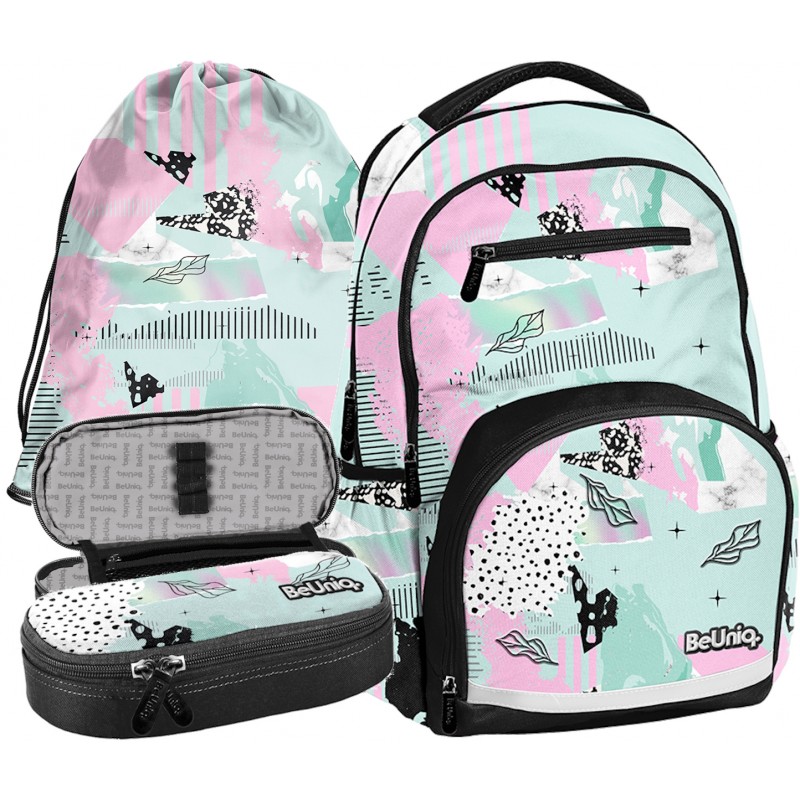 Zestaw szkolny plecak BeUniq Kolaż Miętowy BU25AB