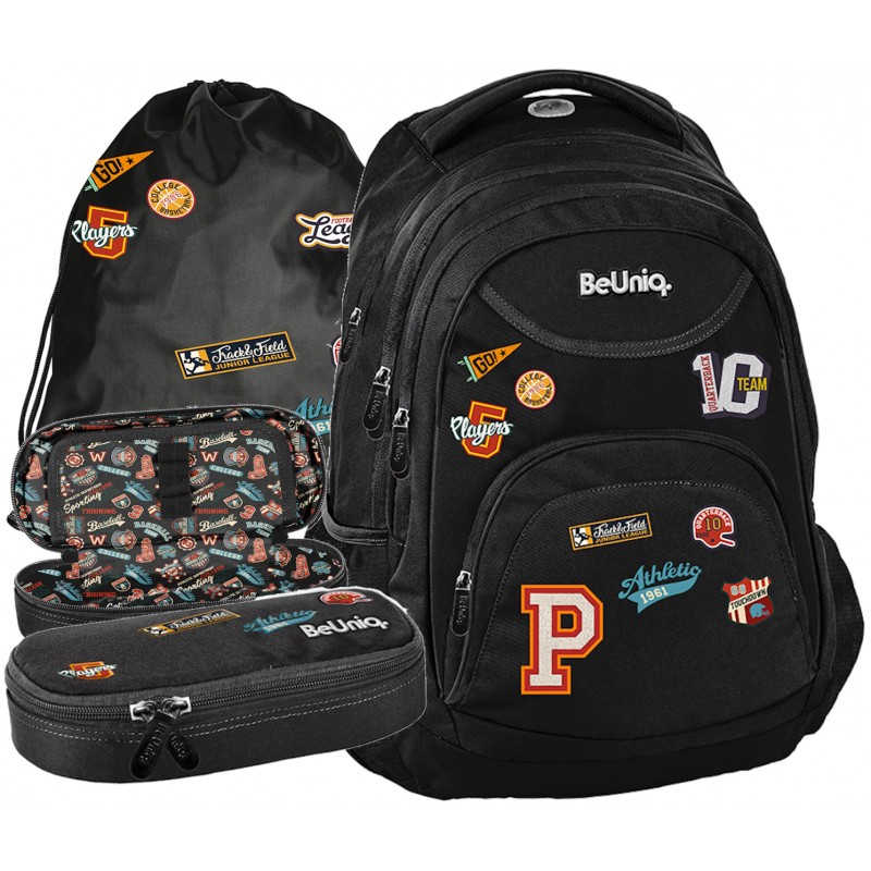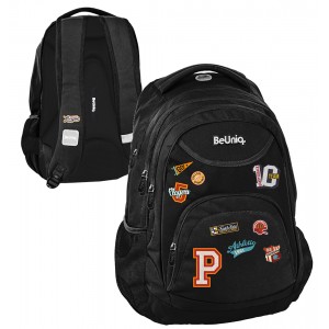 Zestaw szkolny młodzieżowy plecak czarny naszywki BeUniq BU25BL Paso