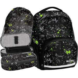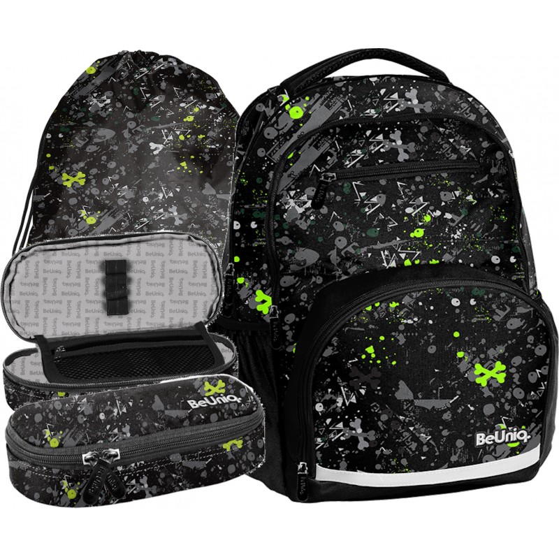 Zestaw szkolny plecak BeUniq Czarny Graffiti BU25BR Paso