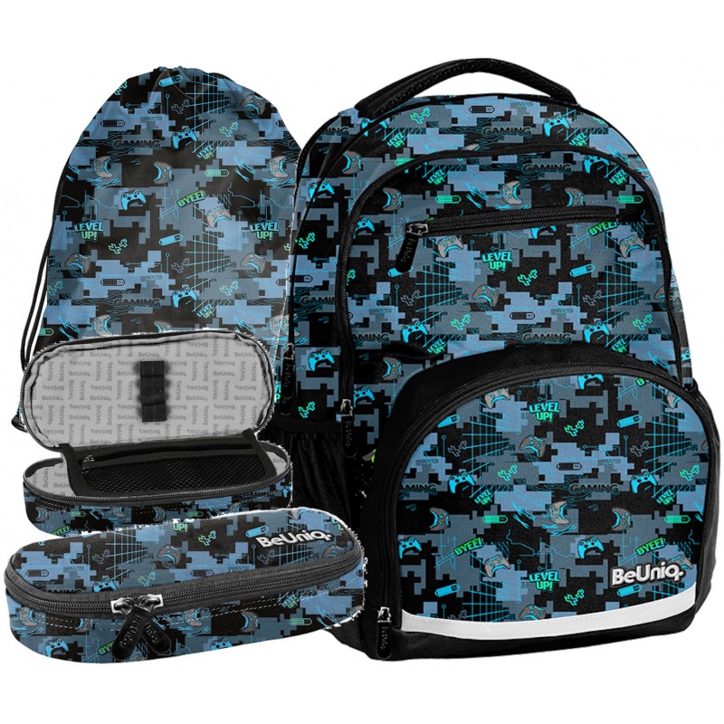 Zestaw szkolny plecak BeUniq Blue Pixel BU25GR Paso