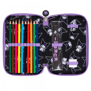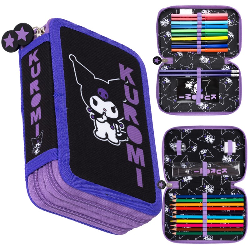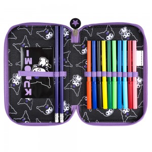 Piórnik szkolny podwójny z wyposażeniem Kuromi Czarny