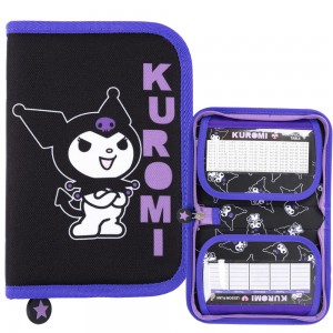 Piórnik szkolny pojedynczy dwuklapkowy Kuromi Czarny