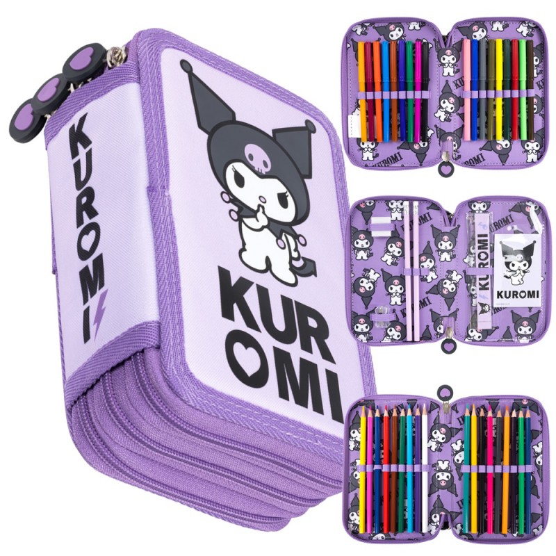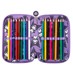 Piórnik szkolny potrójny z wyposażeniem Kuromi Fioletowy