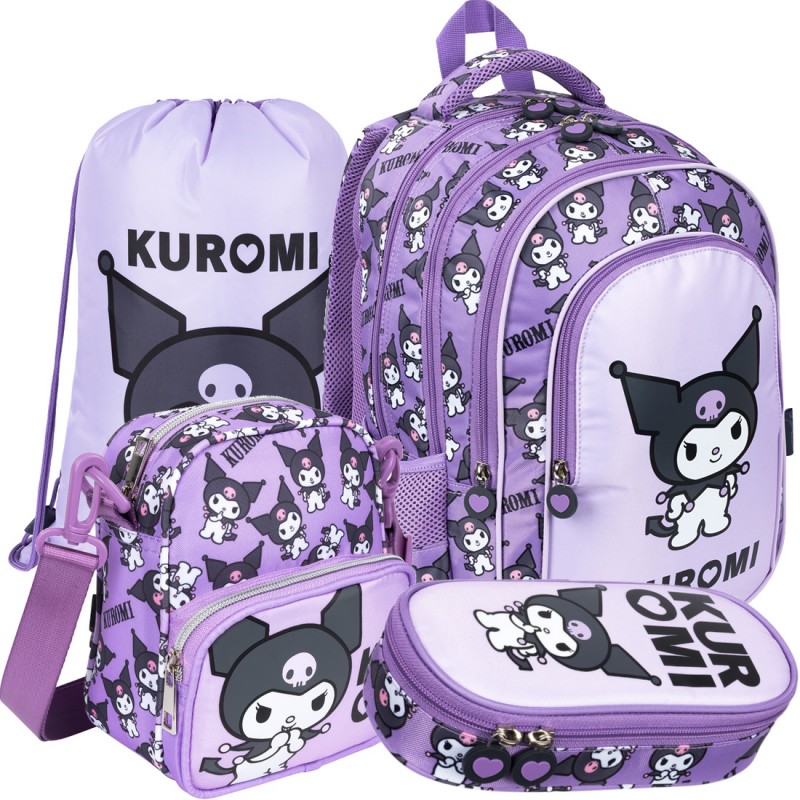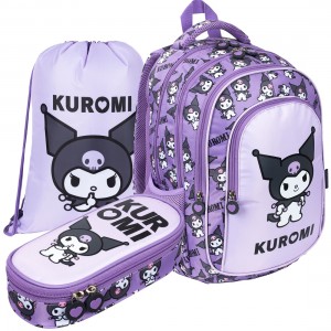 Zestaw Plecak tornister szkolny 4-komorowy Kuromi Fioletowy