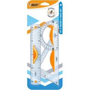 Ten wytrzymały zestaw geometryczny BIC jest wykonany z bardzo trwałego przezroczystego plastiku, który wytrzyma codzienne użytkowanie zarówno w szkole, jak i w domu. Przybory geometryczne mają kompaktowy rozmiar, aby można je było zabierać ze sobą wszędzie bez obaw że zniszczą się w plecaku lub torbie.