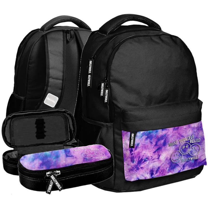Zestaw szkolny plecak BeUniq Smile Smiley Czarny Różowy SM25LF Paso