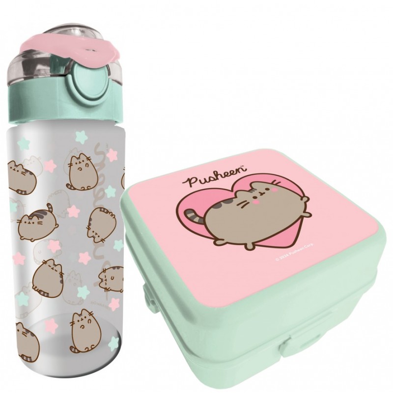 Zestaw śniadaniowy Pusheen Miętowo-Fioletowy (Lunchbox + Bidon)