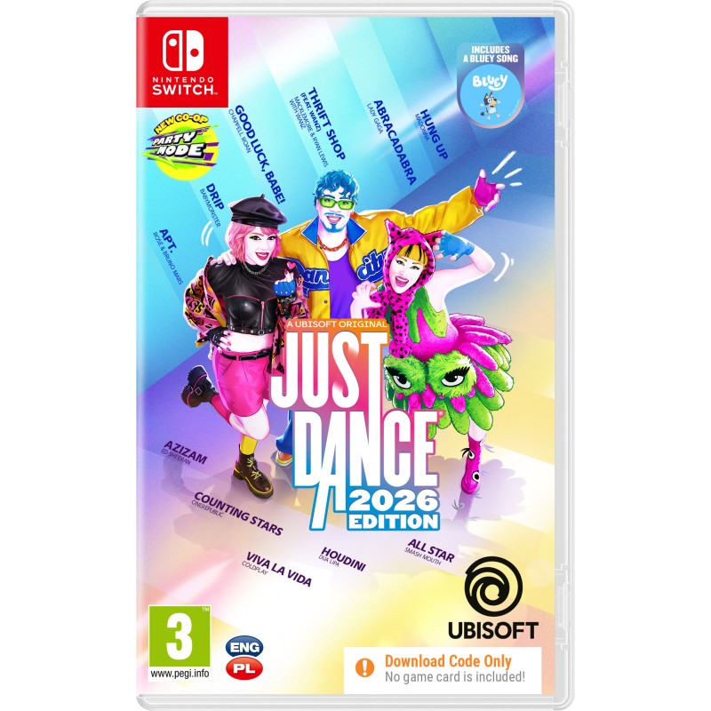 - Uzyskaj dostęp do całej posiadanej już zawartości z Just Dance Edycji 2023, 2024, 2025 i 2026, wraz z twoimi pakietami muzycznymi i subskrypcją Just Dance+ zebranych w jednym miejscu na jednej konsoli!