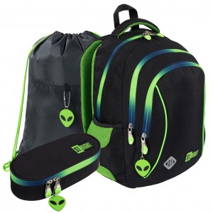 Zestaw Plecak szkolny 3-komorowy Green Power UFO Alien