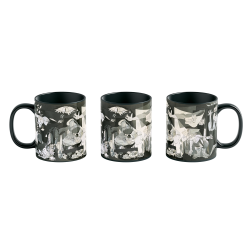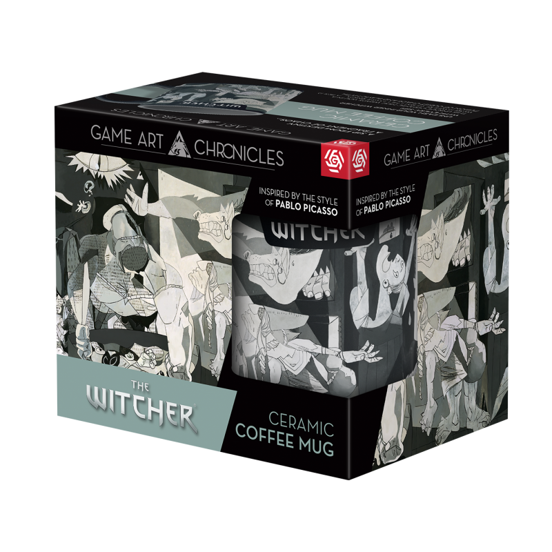 Unikalne połączenie sztuki klasycznej i kultowej wiedźmińskiej sagi. Ten czarny kubek ceramiczny ozdobiony jest wyjątkową grafiką inspirowaną słynnym obrazem Guernica autorstwa Pabla Picassa, w której centralne miejsce zajmuje Ciri z serii Wiedźmin.