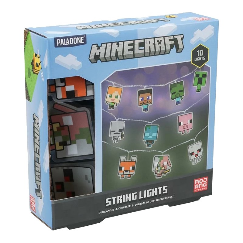 Nadaj swojemu pokojowi wyjątkowy klimat dzięki lampkom dekoracyjnym Minecraft, które przeniosą Cię prosto do pikselowego świata ulubionej gry. Girlanda zawiera 10 szczegółowych lampek z postaciami takimi jak Creeper, Steve, Alex, Zombie, Piglin i inni – to idealny gadżet dla fanów Minecrafta w każdym wieku!