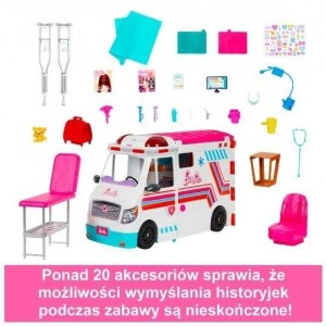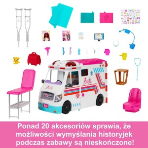 - Dzięki tak wielu elementom inspirującym wyobraźnię ten zestaw Karetka Mobilna klinika Barbie to doskonały prezent dla dzieci od 3 roku życia.