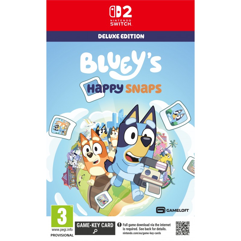 Dołącz do uwielbianego przez wszystkich Blue Heelera w grze „Bluey's Happy Snaps” – zabawnej, interaktywnej przygodzie inspirowanej popularnym serialem telewizyjnym. Odkrywaj znane miejsca, baw się mnóstwem zabawek lub goń figlarne kurczaki i ciesz się zabawnymi zajęciami z Blue, Bingo i przyjaciółmi.