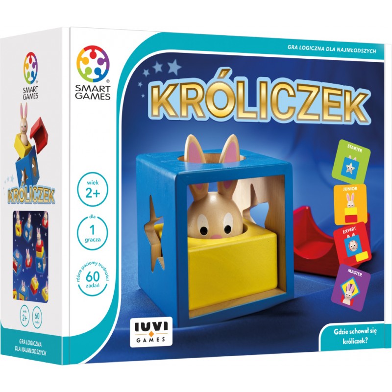 Pojęcie „wyciągnąć królika z kapelusza” nabiera zupełnie nowego znaczenia. Króliczek to edukacyjna gra logiczna, która super sprawdzi się już w przypadku najmłodszych dzieci. Dzięki układaniu elementów zgodnie z ilustracją do konkretnego zadania dzieci uczą się między innymi pojęć związanych z perspektywą, kierunkami i widzeniem przestrzennym.