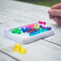 IQ Link to gra, która potrafi zaskakiwać i czasami trudno jest znaleźć odpowiednie ułożenie elementów. Podczas zabawy z dzieckiem warto pomóc mu w rozwiązywaniu zadań wspólnie, zastanawiając się nad ułożeniem poszczególnych elementów i w tym, jak dopasować kółka i wypustki, aby więcej, niż jeden element mógł zmieścić się na tym samym polu.