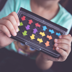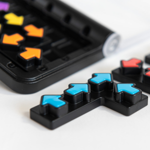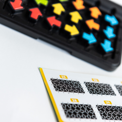 Wybierz zadanie z książeczki i odwzoruj początkowy układ elementów. Pozostałe strzałki musisz ułożyć samodzielnie, ale zwróć uwagę, na kierunek, w którym są obrócone. IQ Arrowas to idealna gra, która sprawdzi się podczas zabawy z dzieckiem i nauki kierunków. W przypadku młodszych dzieci warto wspólnie rozwiązywać z nimi zadania.
