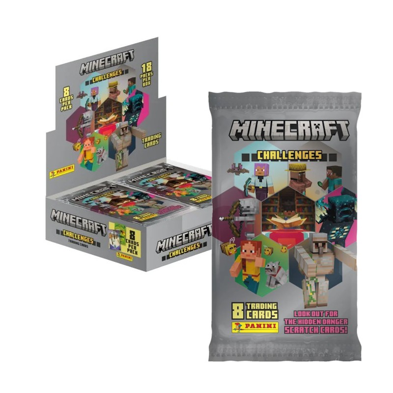 Oryginalnie zapakowany box zawierający 18 saszetek z kartami Minecraft Challanges. Każda saszetka zawiera 8 kart. Łącznie 144 karty.