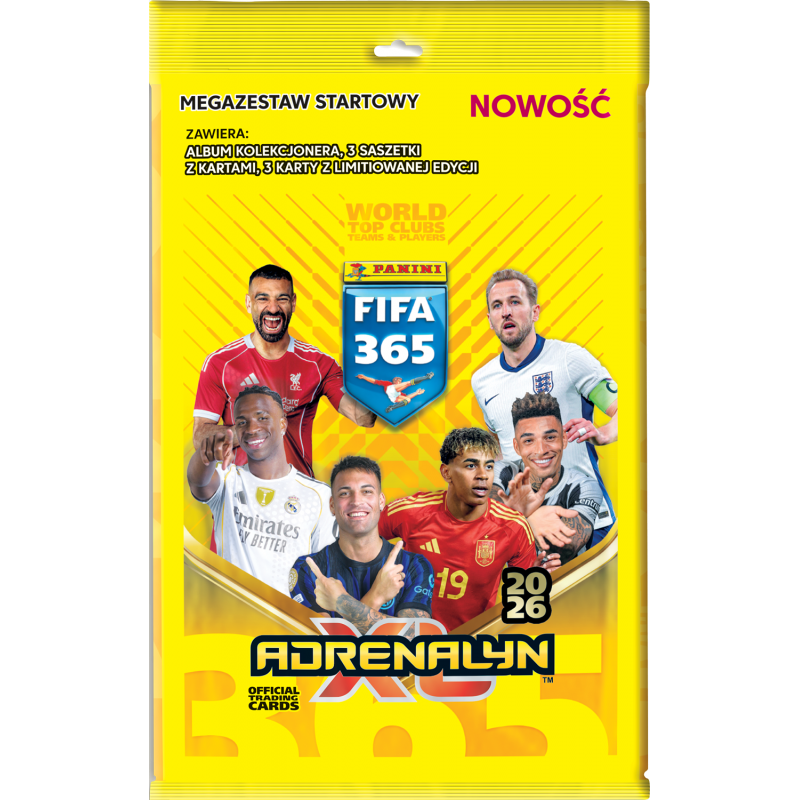 Panini FIFA 365 Adrenalyn XL™ 2026 to już jedenasta kolekcja z serii, która podbiła serca dzieci na całym świecie! Najnowsza kolekcja prezentuje najlepsze drużyny i gwiazdy największych światowych lig piłkarskich, a także nowe treści, kategorie kart i specjalne materiały! Nowością w całej kolekcji są saszetki KICK OFF jako zapowiedź nadchodzącej kolekcji, nawiązanie do nadchodzącego turnieju FIFA World Cup 26 oraz KARTY PALLALEL i KARTY Z AUTOGRAFAMI! Tegoroczna kolekcja to ponad 450 kart do zebrania.
