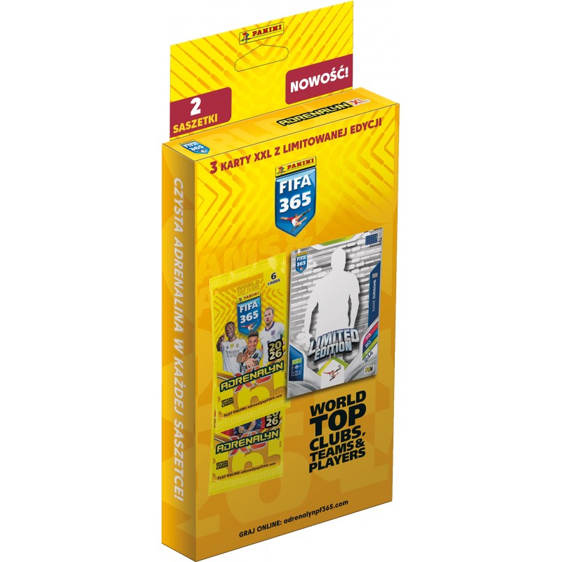 Panini FIFA 365 Adrenalyn XL™ 2026 to już jedenasta kolekcja z serii, która podbiła serca dzieci na całym świecie! Najnowsza kolekcja prezentuje najlepsze drużyny i gwiazdy największych światowych lig piłkarskich, a także nowe treści, kategorie kart i specjalne materiały! Nowością w całej kolekcji są saszetki KICK OFF jako zapowiedź nadchodzącej kolekcji, nawiązanie do nadchodzącego turnieju FIFA World Cup 26 oraz KARTY PALLALEL i KARTY Z AUTOGRAFAMI! Tegoroczna kolekcja to ponad 450 kart do zebrania.