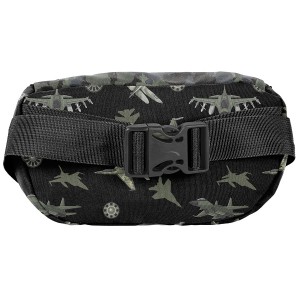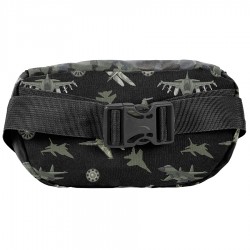 Atrakcyjny design: Czarna kolorystyka z nadrukiem przedstawiającym samoloty nadaje saszetce nowoczesny i dynamiczny wygląd.